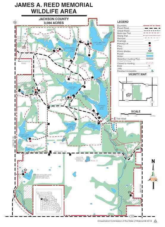 After entering the wildlife area, follow the signs to Bodarc Lake to explore the 2.5 mile Shawnee Trace Trail. Other options include hiking the multiuse trails, walking the paved roads, and hiking along the edges of the multiple lakes here.
